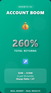 - Account Growth: $50K to $180K (260% gain)