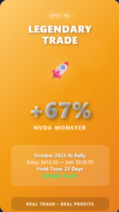 - Best trade: +67.2% (October 2023 AI rally)